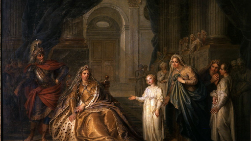 오늘날로 치면 경호대원들이 7살짜리 어린 왕을 지킵니다. 원래는 아달랴를 호위하고 해야 하는데, 내부로부터 악한 여왕 아달랴를 제거하고 새 왕을 옹립하고자 쿠데타를 일으키지요.