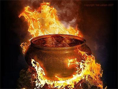 나무를 많이 쌓고 불을 피워 그 고기를 삶아 녹이고 국물을 졸이고 그 뼈를 태우고 가마가 빈 후에는 숯불 위에 놓아 뜨겁게 하며 그 가마의 놋을 달궈서 그 속에 더러운 것을 녹게 하며 녹이 소멸되게 하라. 이 성읍이 수고하므로 스스로 피곤하나 많은 녹이 그 속에서 벗겨지지 아니하며 불에서도 없어지지 아니하는도다. 너의 더러운 것들 중에 음란이 그 하나이니라 내가 너를 깨끗하게 하나 네가 깨끗하여지지 아니하니 내가 네게 향한 분노를 풀기 전에는 네 더러움이 다시 깨끗하여지지 아니하리라.”  (겔 24:10-13)