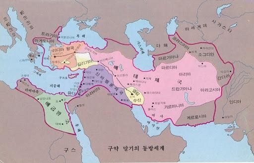 신 바벨로니아 제국의 땅 북쪽과 동쪽에 걸쳐 메디아라는 나라가 있었습니다. 우리는 성경만 보기 때문에 바벨론 제국 말고는 큰 나라가 없는 것으로 생각할 수 있는데, 영토로 보면 더 광대하고 큰 나라, 메디아(성경에는 메대)라는 제국이 있었습니다. 처음에 메디아라는 제국이 생겨난 것은 이렇습니다. 이란(아리안)계 유목 민족이 기원전 11세기 무렵부터 자그로스 산맥 동쪽과 카스피해 남쪽 지역(현재의 케르만샤 일부, 아제르바이잔, 쿠르디스탄)에 정착하여 엑바타나(Ecbatana)를 수도로 삼았습니다. 기원전 625년경, 아시리아의 세력이 약해진 틈을 타 메디아 연맹을 결성하여 강력한 국가 체제를 확립했습니다. 그리고 기원전 612년, 바벨론과 연합하여 철제 무기와 전차로 무장한 앗시리아의 수도 니네베를 함락시키고 서아시아의 강대국으로 부상했습니다.