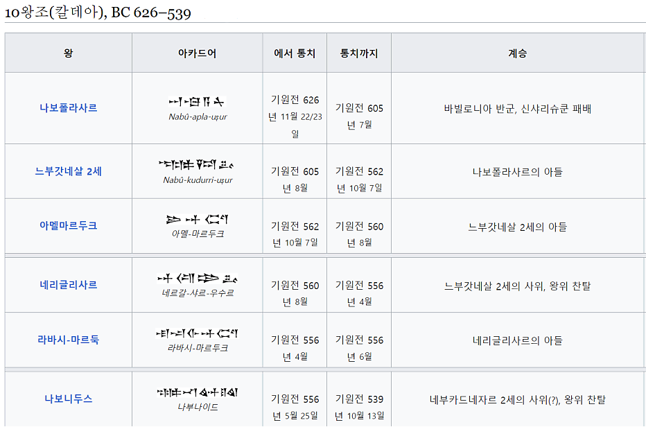 느부갓네살이 죽은 뒤, 맏아들이었던 에윌므로닥이 즉위하여 약 2년간 나라를 다스리게 됩니다. 이때, 여호야긴이 석방되어 유다 왕의 지위를 회복하기도 합니다. 그러나 2년 만에 매형이자 군사령관인 네르갈사레셀에게 암살됩니다. 네르갈-사레셀은 느부갓네살의 사위이자 군사 지휘관이었습니다. 그는 유능한 통치자였으나 즉위 4년 만에 사망합니다. 그의 어린 아들 라바시-마르두크(Labashi-Marduk)가 왕위를 이었으나, 불과 9개월 만에 귀족들에 의해 살해당합니다.